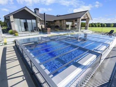 A VIVA™ alacsony profilú medencefedés az Alukovtól elegáns, egysínes rendszerével három oldalról biztosít akadálymentes hozzáférést a medencéhez. Modern kialakítása nemcsak hatékony védelmet nyújt a szennyeződések ellen, hanem elősegíti a víz gyorsabb felmelegedését, valamint éjszaka segít megtartani a kellemes vízhőmérsékletet.