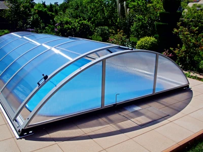 A dupla sínes rendszer révén a fedés stabil, mégis könnyen mozgatható. Az oldalajtó a legnagyobb szegmensen található, így a belépés kényelmes és egyszerű, akár idősebbek vagy gyerekek számára is.