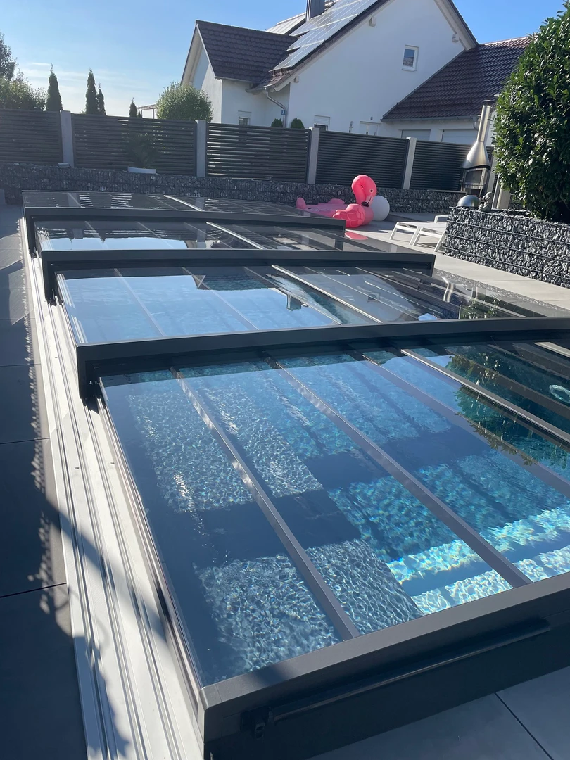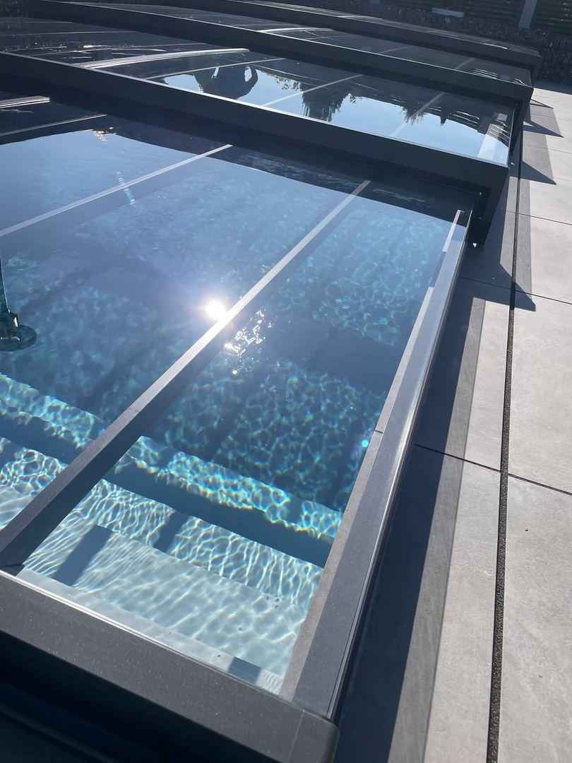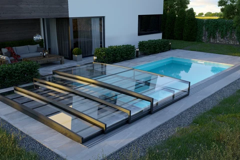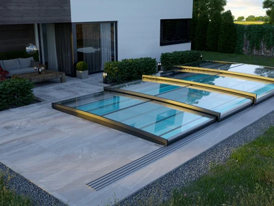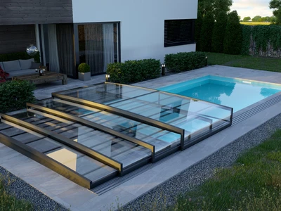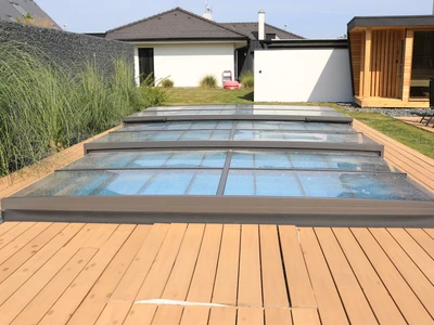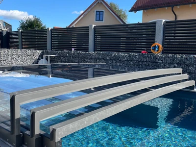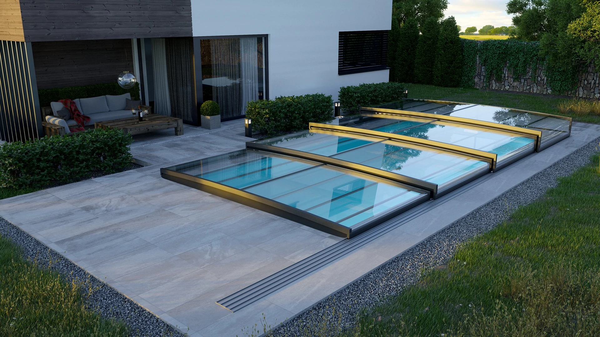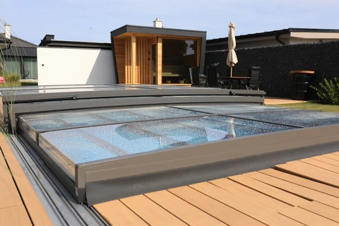 A PARADE LOW medencefedés diszkrét és hatékony megoldást kínál azok számára, akik a medencetér védelmét szeretnék stílusosan megoldani, anélkül hogy megtörnék kertjük természetes látványát. Ultraalacsony kialakítása lehetővé teszi, hogy harmonikusan illeszkedjen bármilyen környezetbe, miközben modern, letisztult formavilága eleganciát sugároz. A fedés íveiben az éles és lekerekített vonalak egyaránt megjelennek, ezáltal a konstrukció kortárs megjelenést kölcsönöz a kültéri térnek.