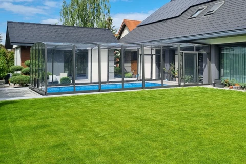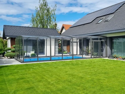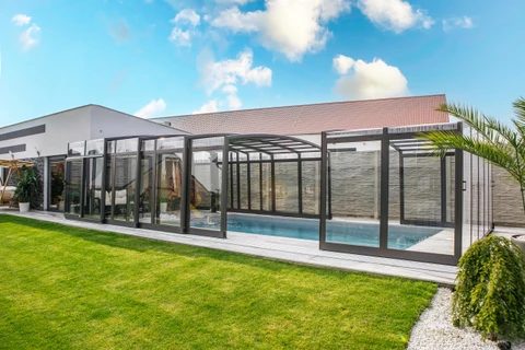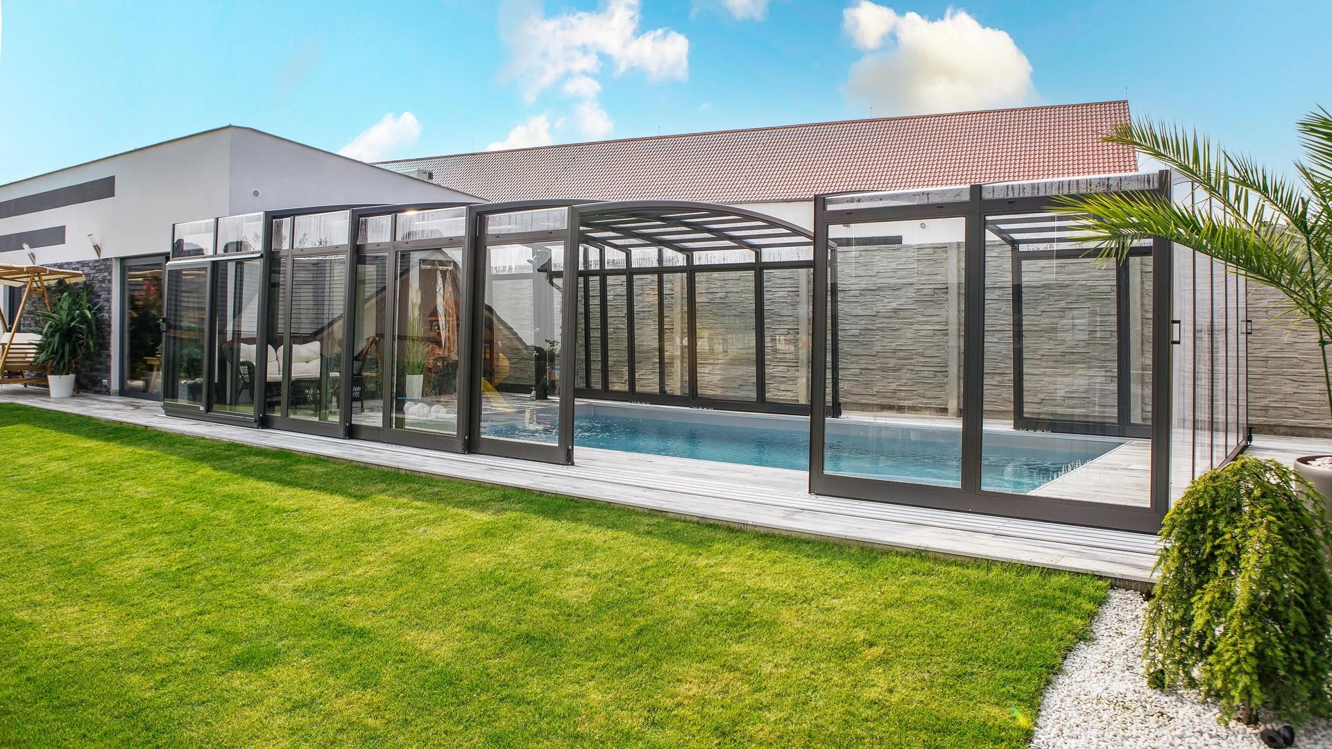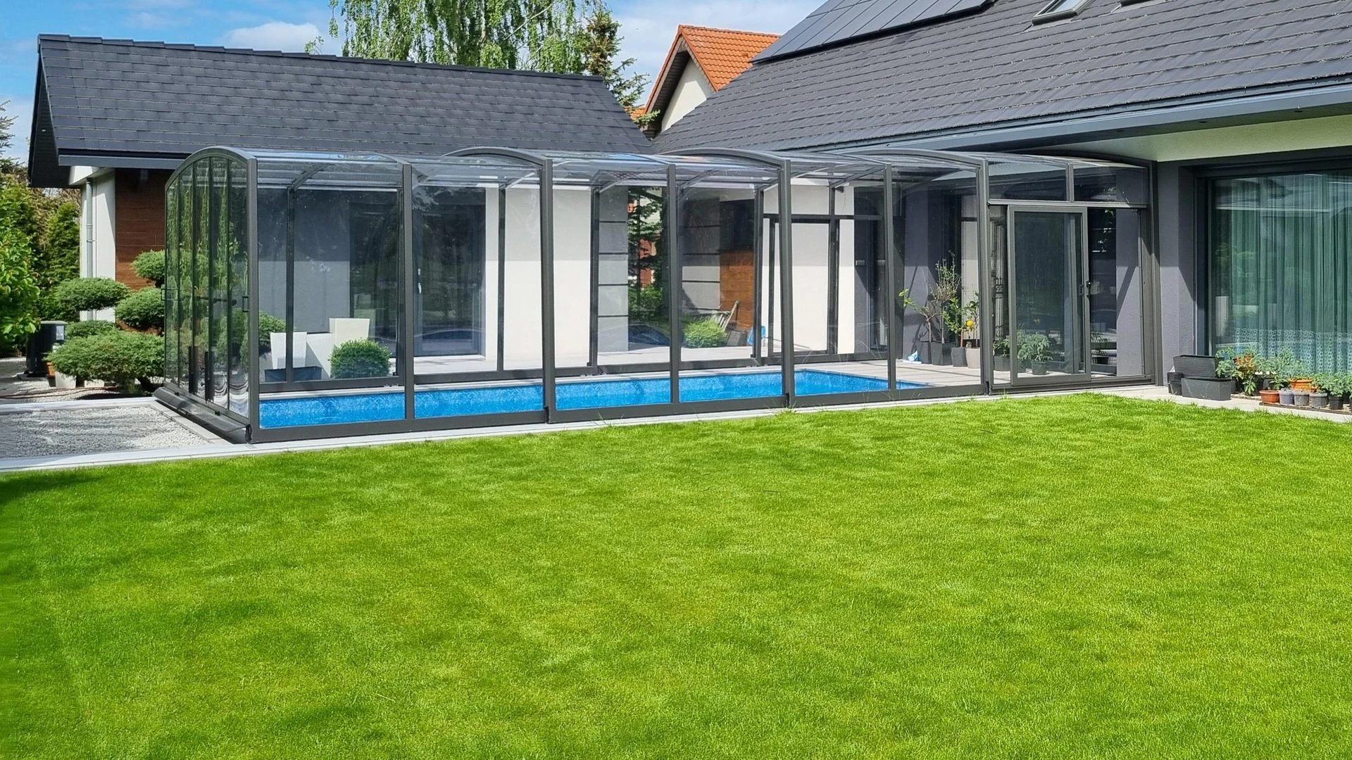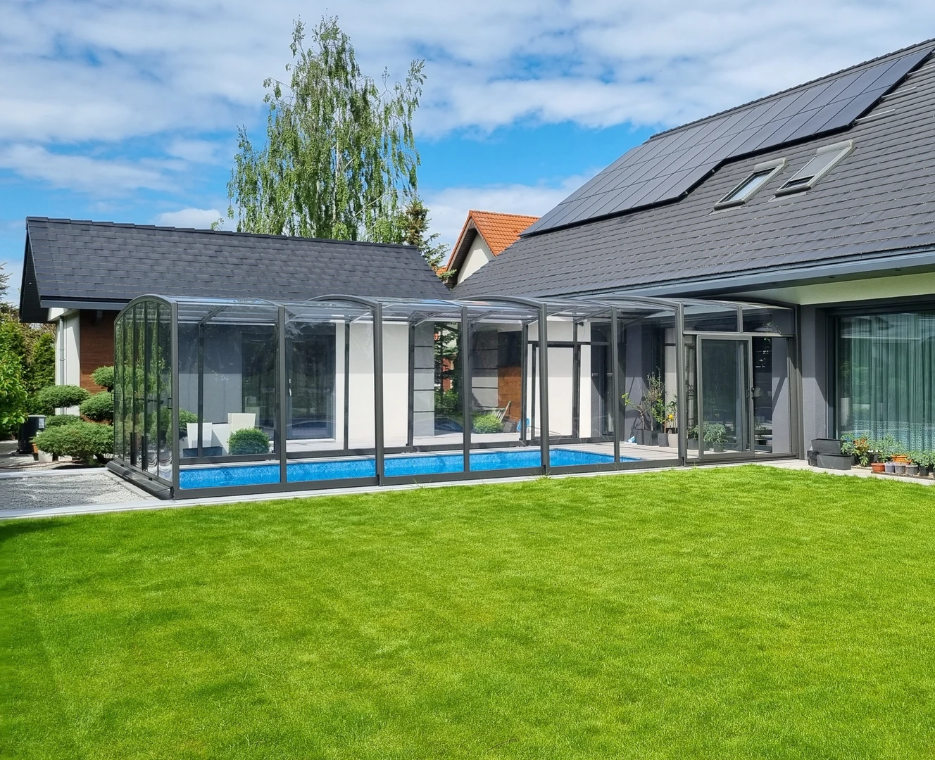 A VISION™ medencefedés többféle vázszínben érhető el: ezüst, fehér, antracit vagy bronz árnyalatban. A polikarbonát panelek víztiszta vagy füstszínű kivitelben választhatók, így a fedés könnyen harmonizál az adott kert vagy épület építészeti stílusával.