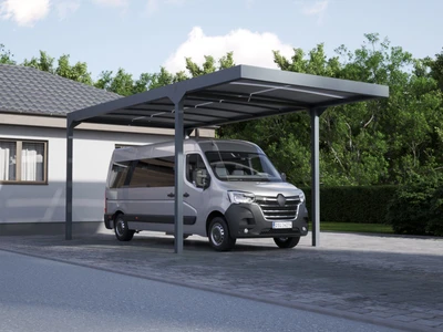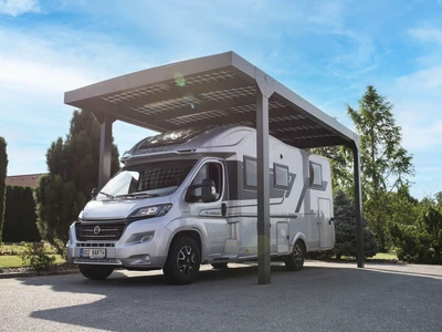 A Carport Camper Solar egy innovatív, napelemes autóbeálló, amely kifejezetten lakóautók számára készült. Háromféle méretben elérhető, akár 6,96 kWp teljesítményre képes napelemes rendszerével környezetbarát parkolást biztosít, miközben hozzájárul a CO₂-kibocsátás csökkentéséhez. Antracit színű, modern szerkezete harmonikusan illeszkedik bármilyen építészeti környezetbe.