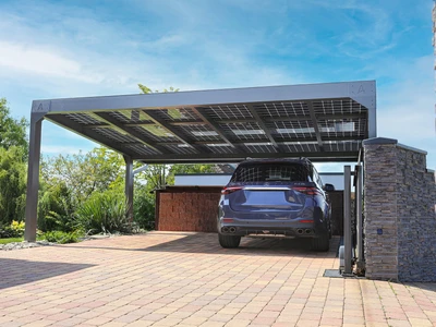 A Carport Solar Premium a legmodernebb technológiát képviselő, prémium kategóriás napelemes autóbeálló, amely keret nélküli, üveg-üveg kialakítású fotovoltaikus panelekkel van felszerelve. Letisztult, elegáns formavilága nemcsak esztétikus, hanem praktikus is: integrált ereszcsatornával és hatékony esővízelvezetéssel biztosítja a hosszú távú, gondtalan használatot.