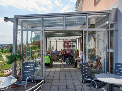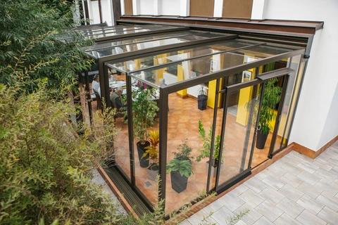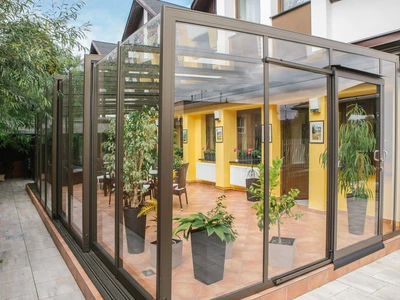 A CORSO Solid teraszfedés egy mozgatható rendszer alumínium vázzal és tartós polikarbonát panelekkel – ideális megoldás a terasz egész éves használatához.