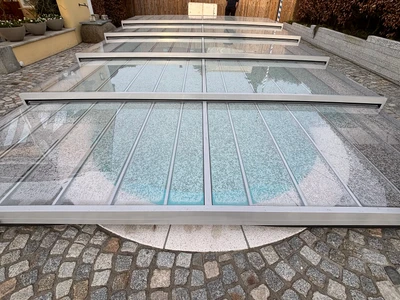 A PARADE LOW medencefedés egy rendkívül alacsony, letisztult vonalvezetésű tolható megoldás, amely diszkrét jelenlétével szinte észrevétlenül illeszkedik a kert környezetébe. Minimalista formaterve révén a piacon elérhető legalacsonyabb modellek közé tartozik, miközben praktikus kialakítása is figyelemre méltó.